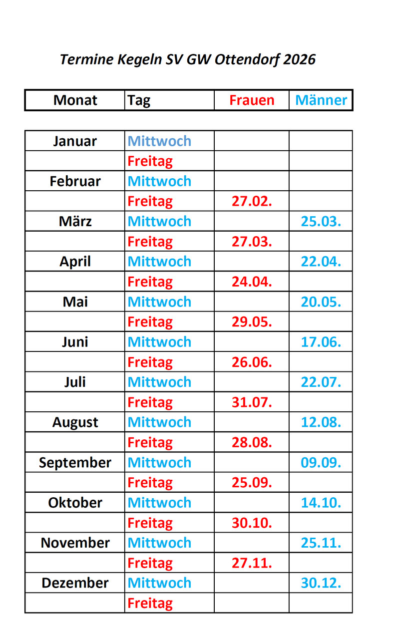 Belegung der Kegelbahn